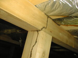- 蟻道の追跡: シロアリが作る泥の道「蟻道」を地面から土台、柱の隅々まで探します。